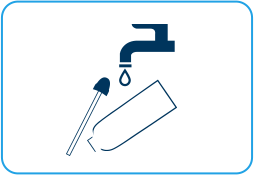 Niewykorzystany roztwór wylej, a butelkę i nakrętkę dokładnie umyj i osusz (nie myj irygatora w zmywarce ani przy użyciu drażniących detergentów).