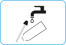 Przygotuj roztwór do płukania: wsyp zawartość 1 lub 2 saszetek proszku do dołączonej butelki, a następnie uzupełnij ją do zaznaczonej linii (240 ml) letnią wodą.